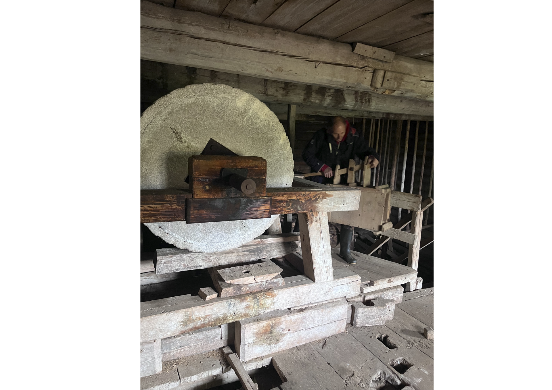 Но спасать турбинную мельницу приходилось и без разрешающих документов. Как-то осенью Валентин приехал и понял, что опора под лестницей может не пережить зиму. Нужно было рубить новые опоры и подпирать нависший над водой угол мельницы.