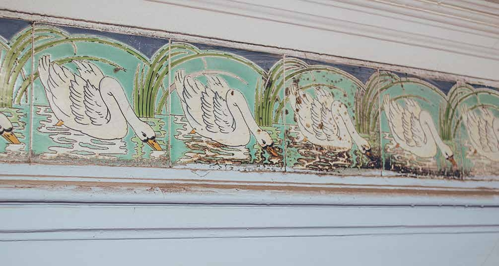 Общество привозило кафель и метлах из Англии, Германии и Франции. Фриз под потолком для города уникален, хотя вообще кафель с лебедями разных конфигураций и степени проработанности делали буквально все — страшно популярный был мотив. Ближайшие известные мне керамические лебеди живут в Выборге, и сделали их немцы. А тут — французы, которых в городе по пальцам пересчитать!