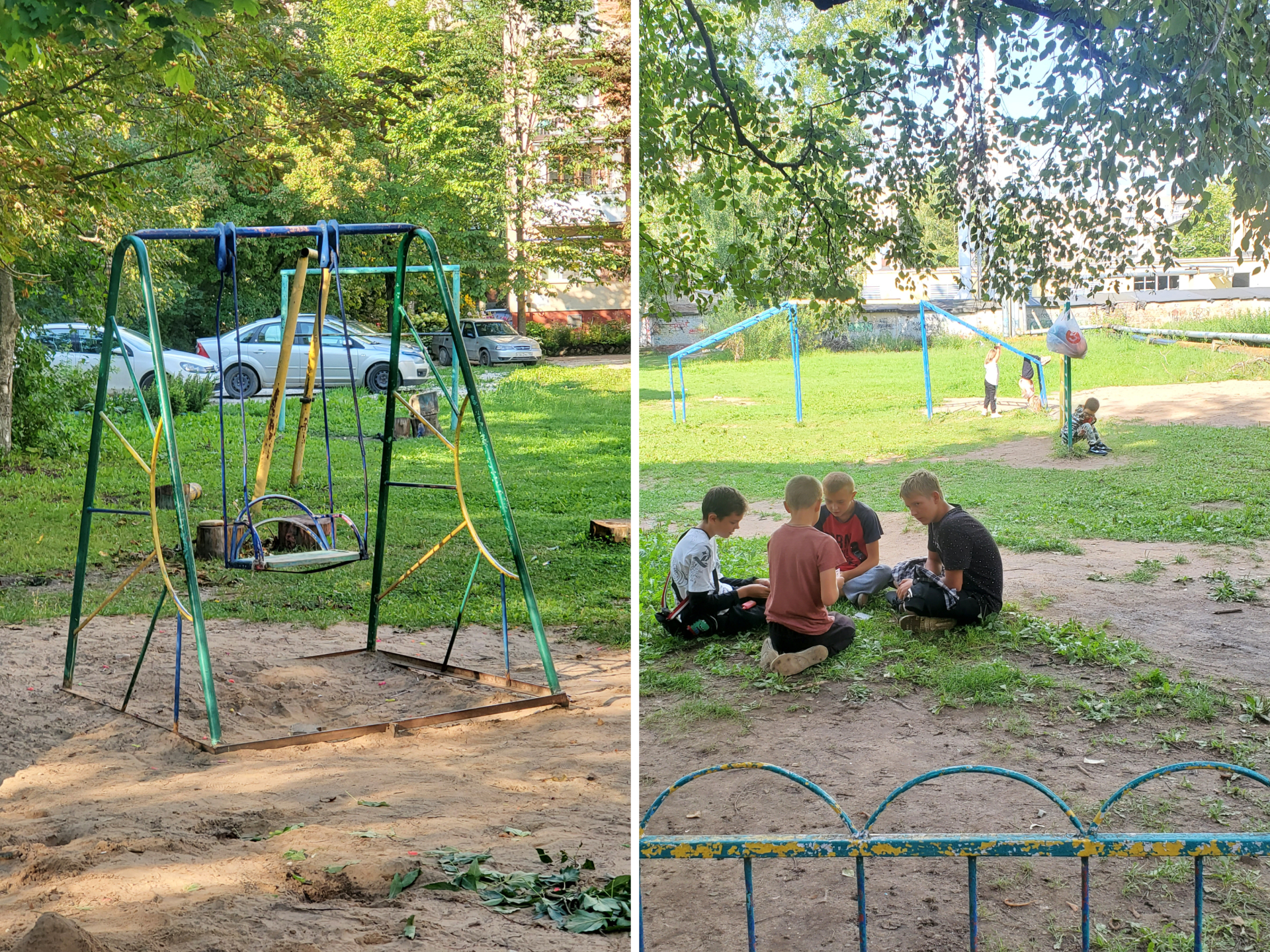 Я также часто вижу в соцсетях современные фотографии детских площадок из малых городов. Их делают люди, которые возвращаются в город детства на несколько дней. Они радуются старой площадке, которая почти не поменялась — можно даже залезть на горку или покачаться на качелях. А вот если площадку снесли, то двор для вернувшегося становится сразу безликим, скучным, «не тем».