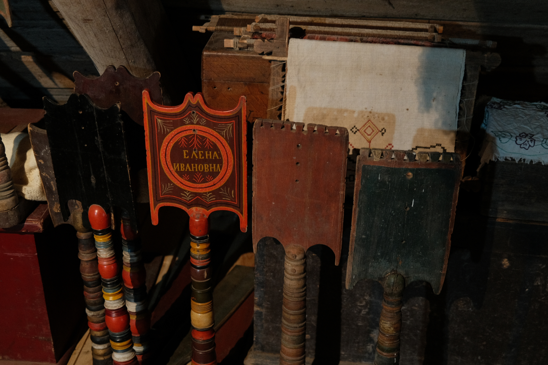 С этими «несколькими бабушками», хранительницами памяти Лампово, краеведа познакомила та же Мария Лаптева. Они поведали Андрею множество легенд и преданий. Рассказали, что престольным праздником был Никола и что на него всегда устраивались гуляния. Отдали семейные фотографии, а с ними — вековые прялки и другие предметы быта: «Нам это уже не нужно. Дети уехали. Забирай».